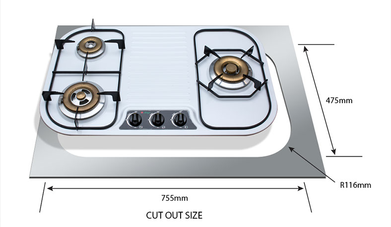 • Built in flame failure safety device. Cuts off gas supply to the burners automatically in the event the flame is accidentally extinguished or blown off.